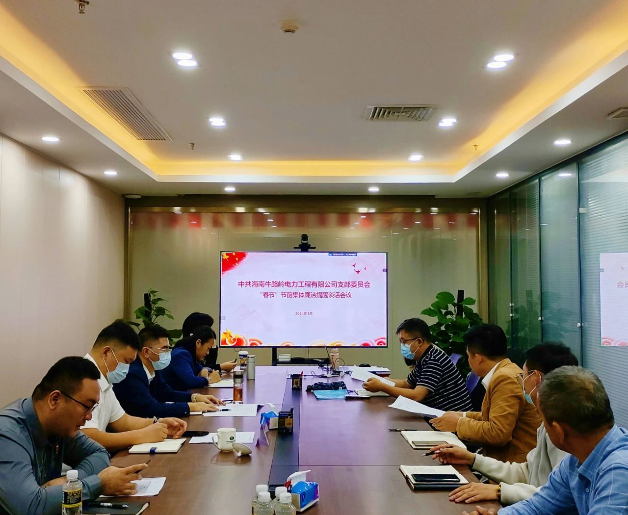会议传达了海控能源2024年春节前集体廉洁提醒谈话会会议精神,集中学习了中共中央办公厅、国务院办公厅印发的《关于做好2024年元旦春节期间有关工作的通知》及《中共海南省国有资产监督管理委员会委员会关于印发2023年省属国资国企廉政家书的通知》《中共海南省国有资产监督管理委员会委员会关于省属重点监管企业四起违规吃喝问题典型案例的通报》等有关纪律作风和腐败问题执纪问责的相关文件精神,集中观看了《树清廉风气 创优质工程》等警示教育片,深切感受到全面从严治党就在身边、正风肃纪反腐就在身边、纪检监察就在身边,认识到工程廉政建设的重要性和严以用权、严以修身、严以律己的必要性。