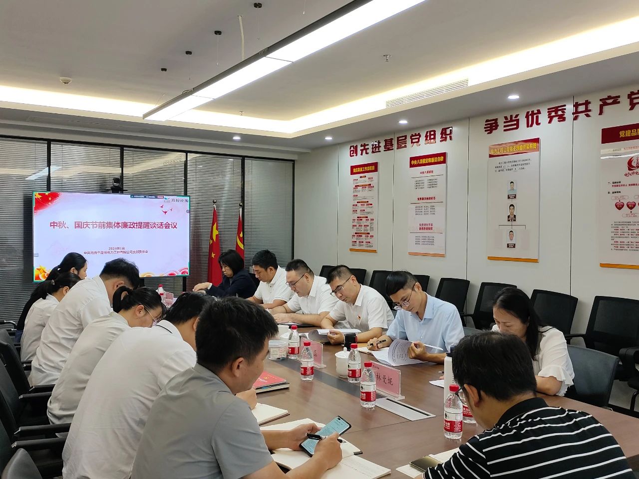 2024年中秋、国庆到来之际,为深入贯彻落实海控能源党委全面从严治党部署要求,持续加固中央八项规定精神堤坝,持续加强对党员教育管理监督,提高党员干部廉洁意识和拒腐防变能力,持续营造风清气正的节日氛围,9月13日下午,电力工程公司党支部召开2024年中秋、国庆节前集体廉政提醒谈话会。公司领导班子、全体党员、发展对象、入党积极分子、入党申请人共计30余人参会。