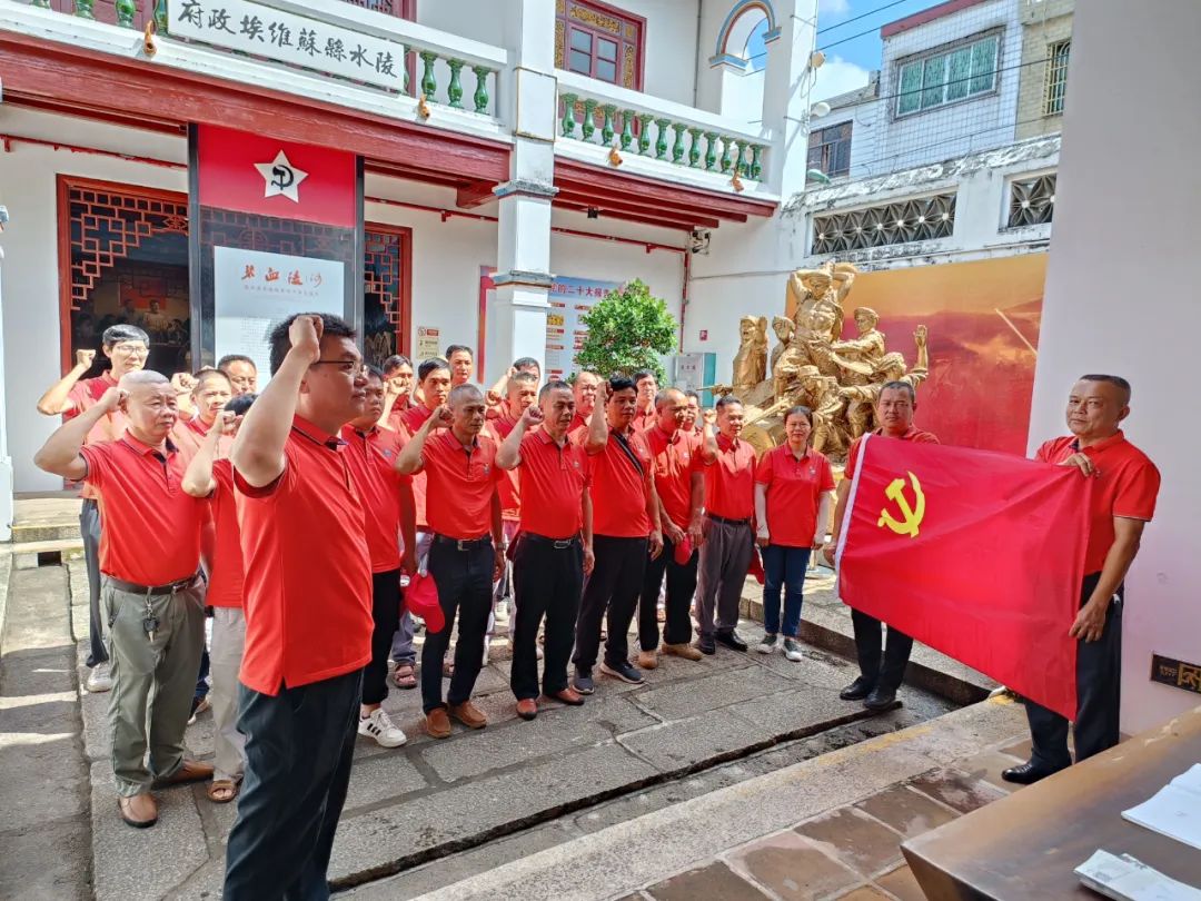 在苏维埃政府旧址,全体人员面对党旗,在党支部书记的带领下,重温了入党誓词,坚定了入党的初心和使命。大家同时参观学习馆内的历史照片、文献资料及历史文物等,近距离感受陵水县苏维埃政权革命队伍那段与国民党反动势力作顽强斗争的血雨腥风、金戈铁马、可歌可泣的艰难岁月,让大家油然升起对伟大革命前辈及烈士们的深情追思和无限敬仰之情。